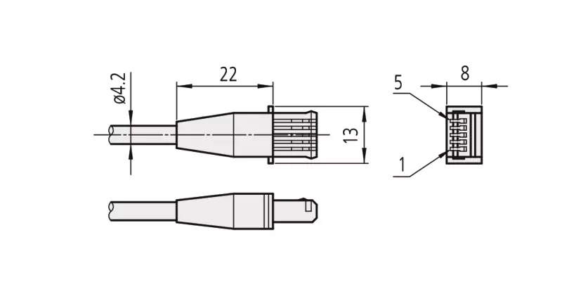 The Mitutoyo Digimatic Cable, Flat Straight Type is designed to connect various Mitutoyo measuring devices with data output to a PC. This cable is part of a broad range of cables that are available to ensure seamless data transfer between your measurement instruments and PC systems. The cables support both direct connections via USB (using USB Input Tool Direct Cables) and indirect connections through standard Digimatic cables paired with interface boxes (such as the DMX box or USB Input Tool Box), or wireless transmitters (U-WAVE-T in box version).
